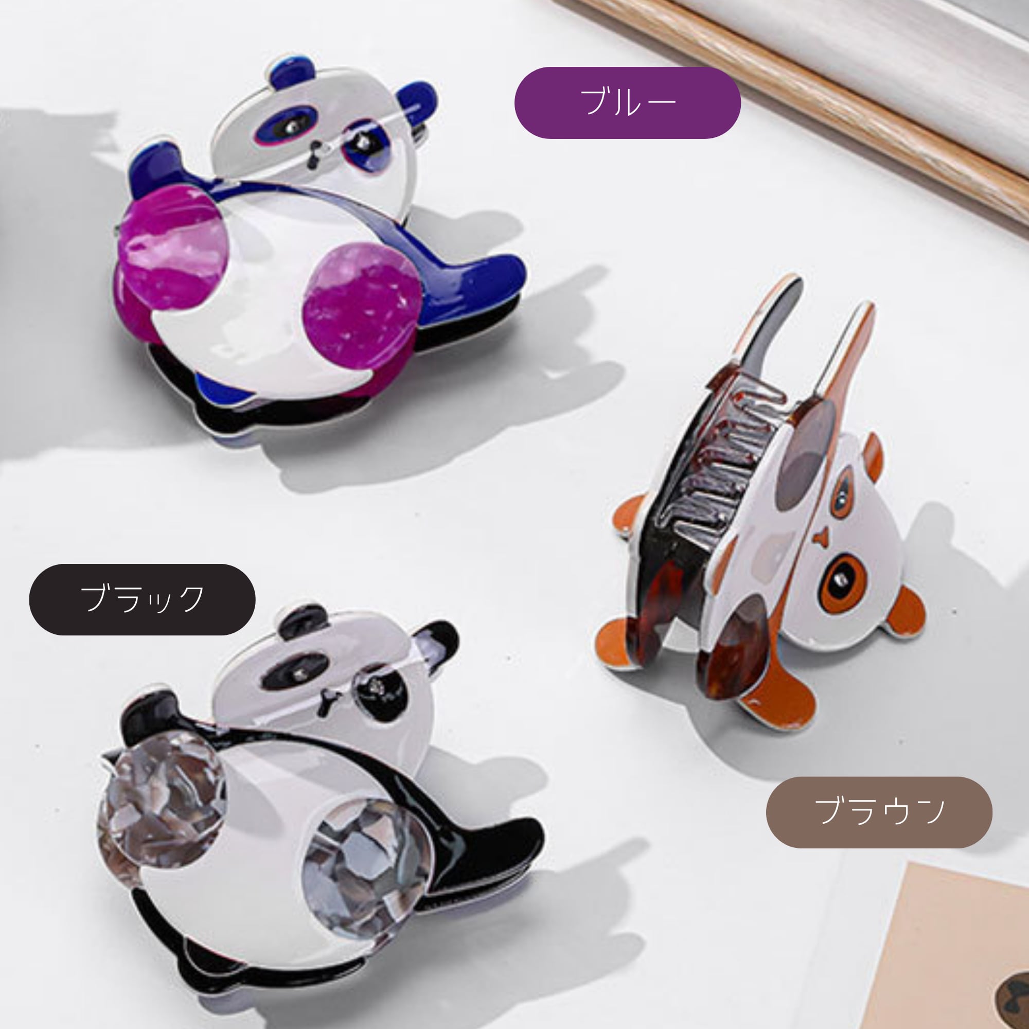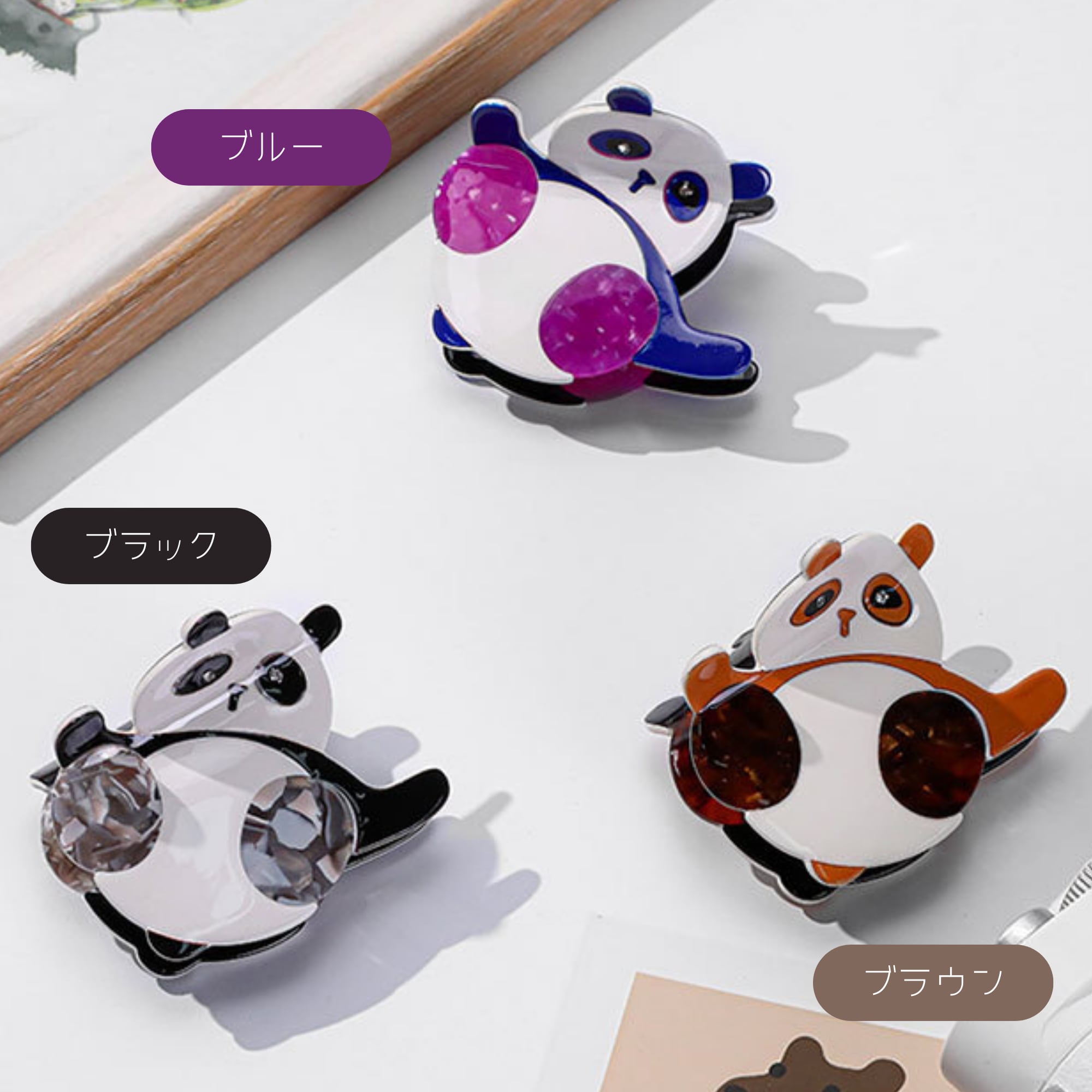 パンダのカラフルヘアクリップ_60317
