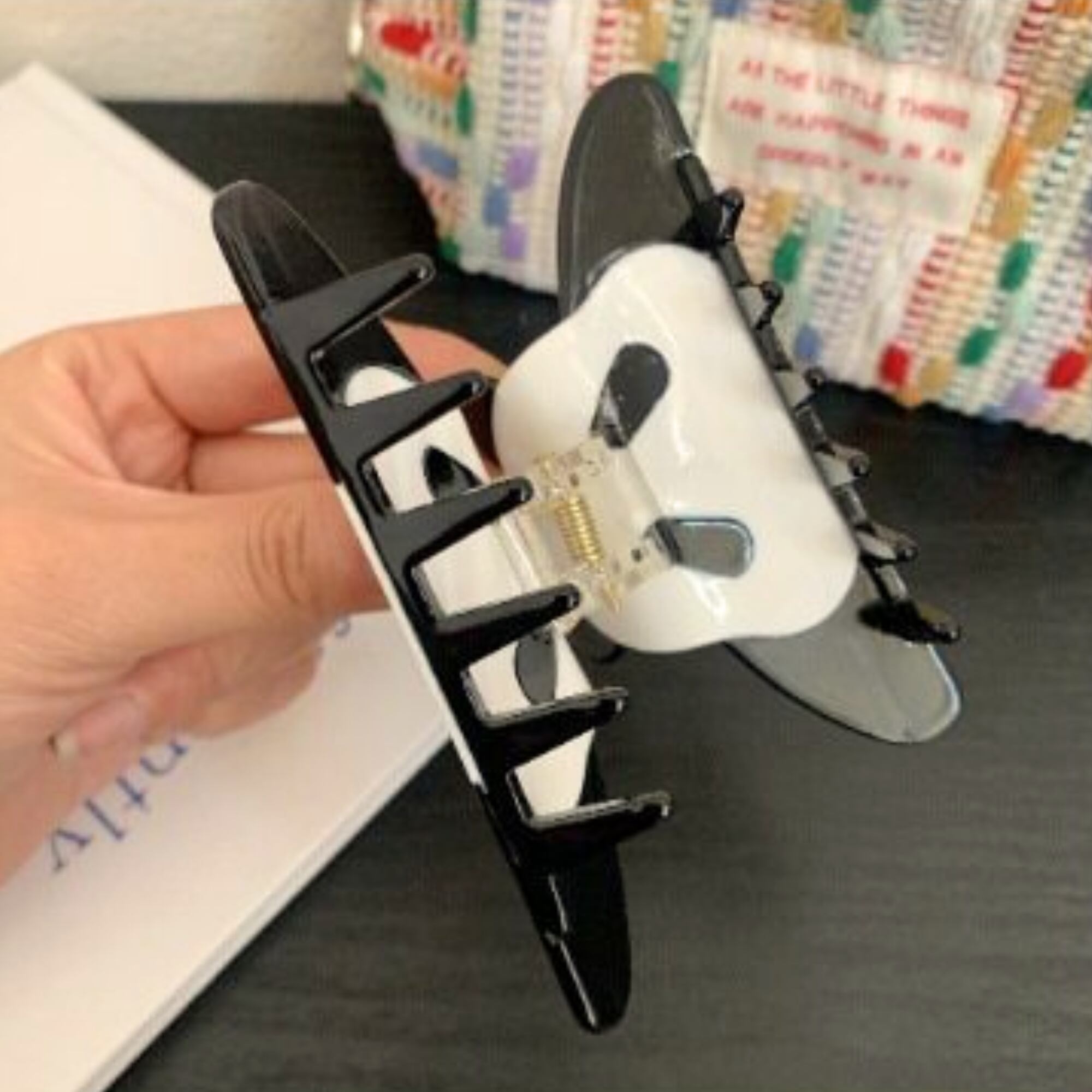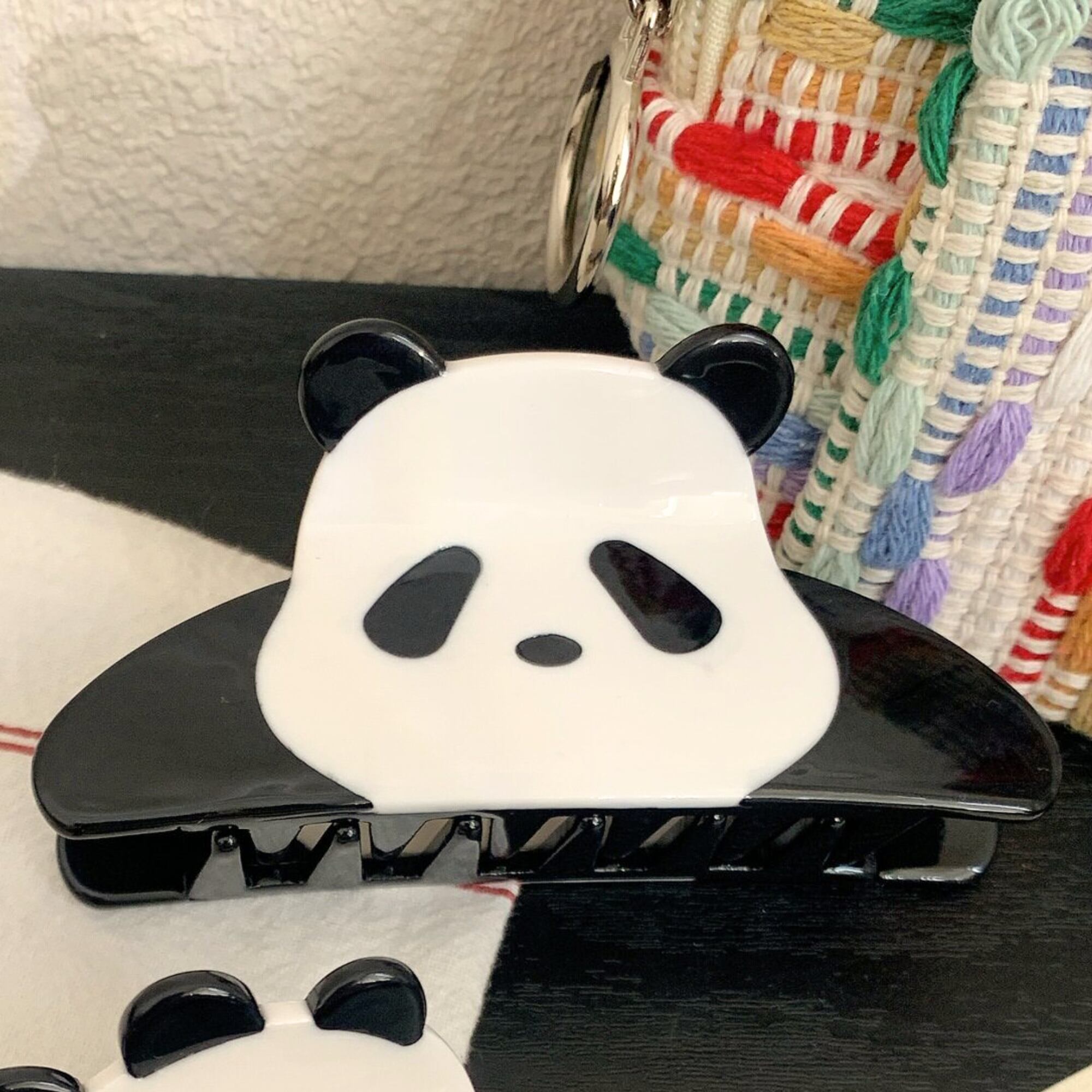 脱力系パンダのアクリップ。ぐてぇ~っとしてますが、ヨコ幅が広いので髪をしっかりまとめてくれます!
